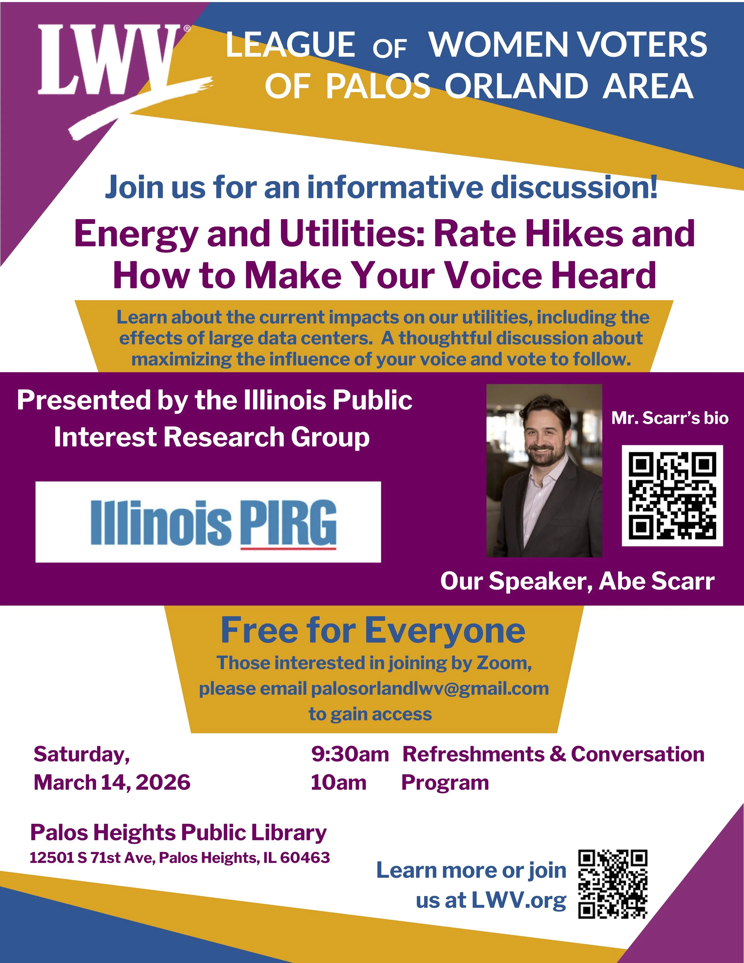 This event is sponsored by the League of Women Voters of Palos-Orland.
